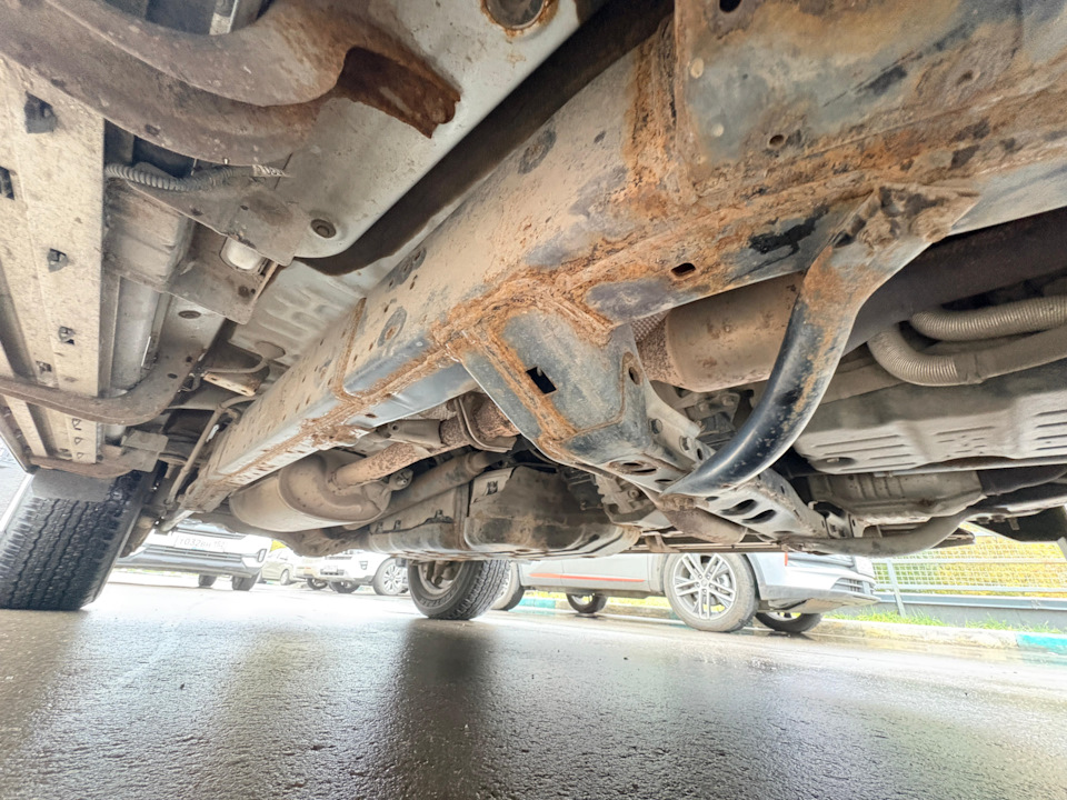 Множественная коррозия по низу. Раму, естественно, никто не антикорил. Стык КПП и раздатки – течь и это на пробеге «100 тыс км»