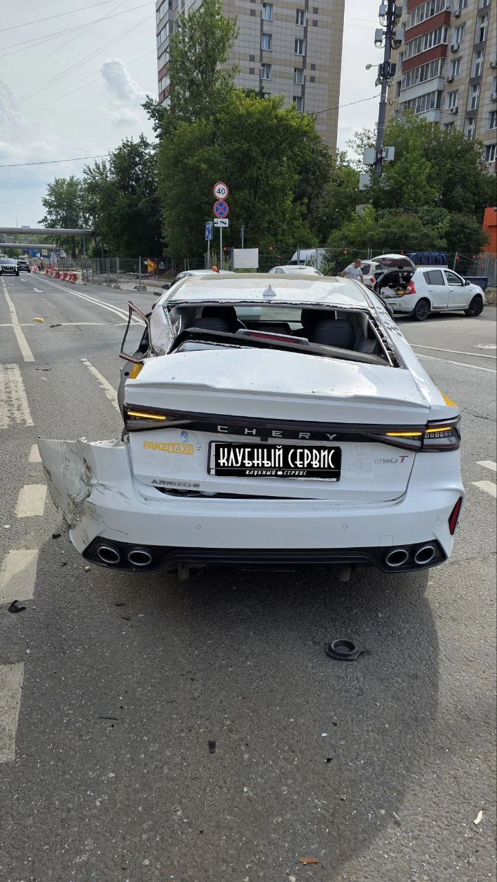 Сильно разбита задняя часть автомобиля.