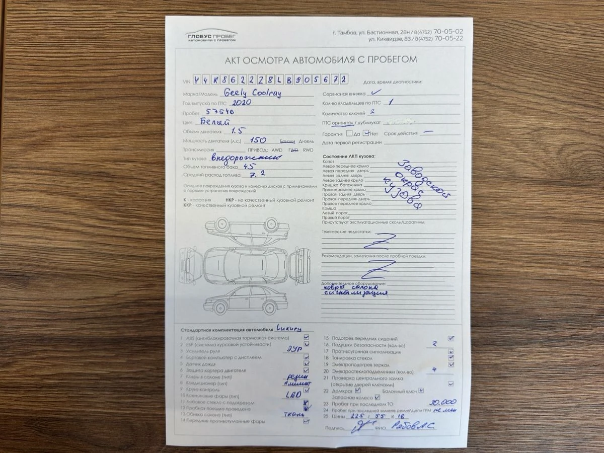 Состояние авто: