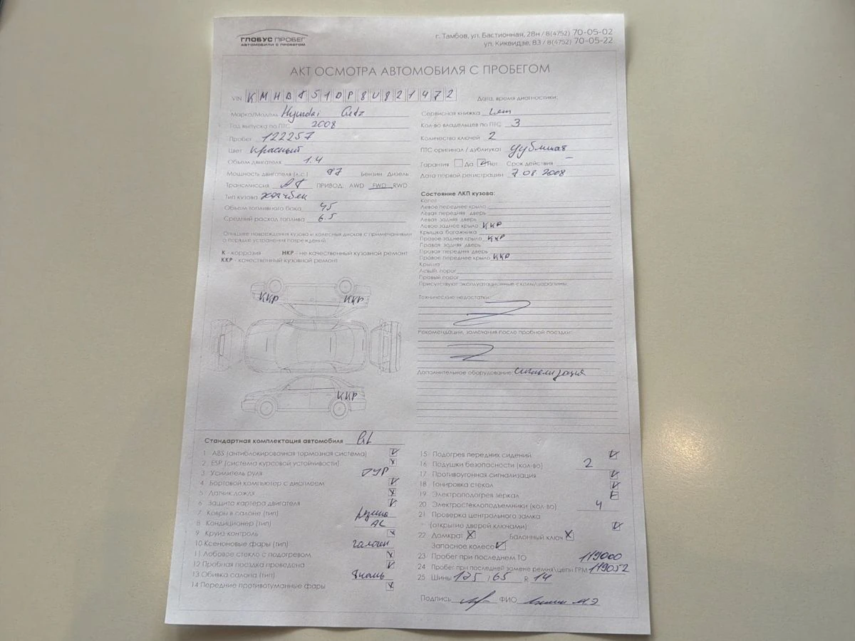 Состояние авто: