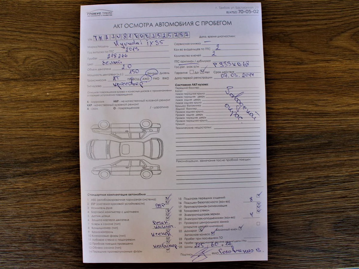 Состояние авто: