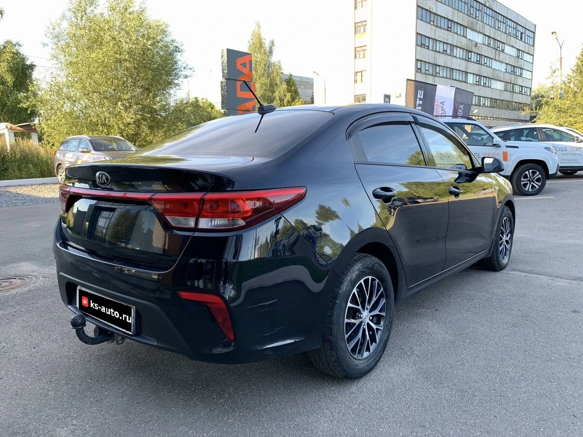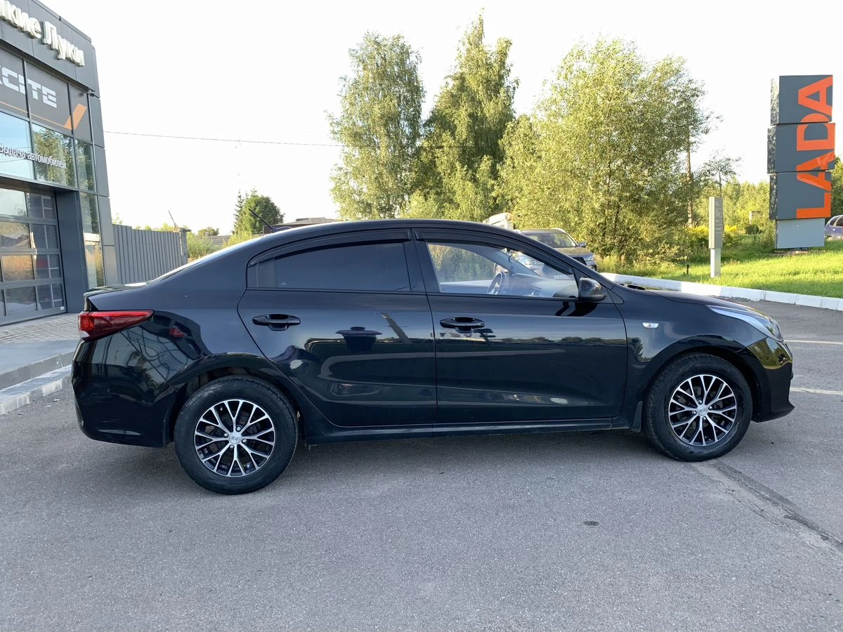 Kia Rio IV Рестайлинг 2020 года — это практичный седан с бензиновым двигателем объёмом 1,6 литра и мощностью 123 лошадиные силы, оснащённый механической коробкой передач. Чёрный цвет кузова и лаконичный дизайн делают автомобиль подходящим как для городских поездок, так и для путешествий за город.