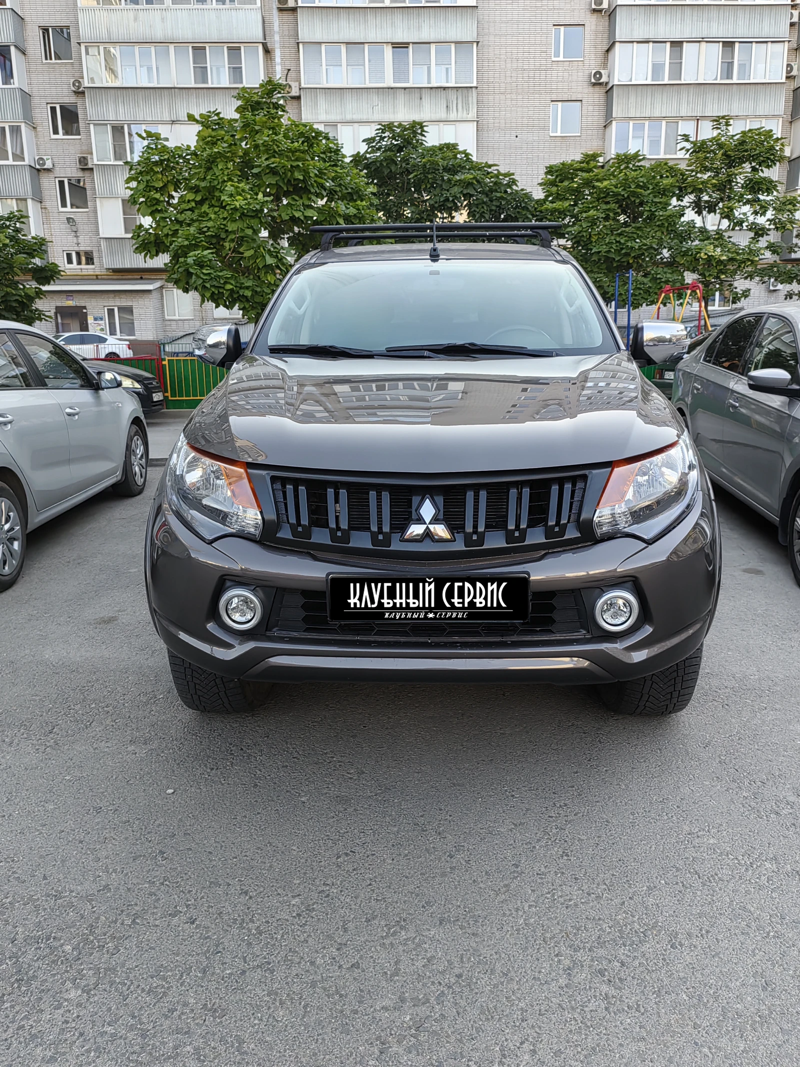 Mitsubishi L 200 , 5 поколения .Сидения обшиты кожей , установлен задний силовой бампер, передний бампер из стекловолокна с вклееной профильной трубой. На багажнике установлена трехсекционная крышка. Удален сажевый фильтр, заглушен ЕГР. Колеса комплект зима/лето на дисках. Установлены рейлинги на крыше , защита днища.Шумоизоляция дверей, тонировка в пределах разрешенных норм. По кузову имеются мелкие недочеты. Машина эксплуатировалась в городских условиях