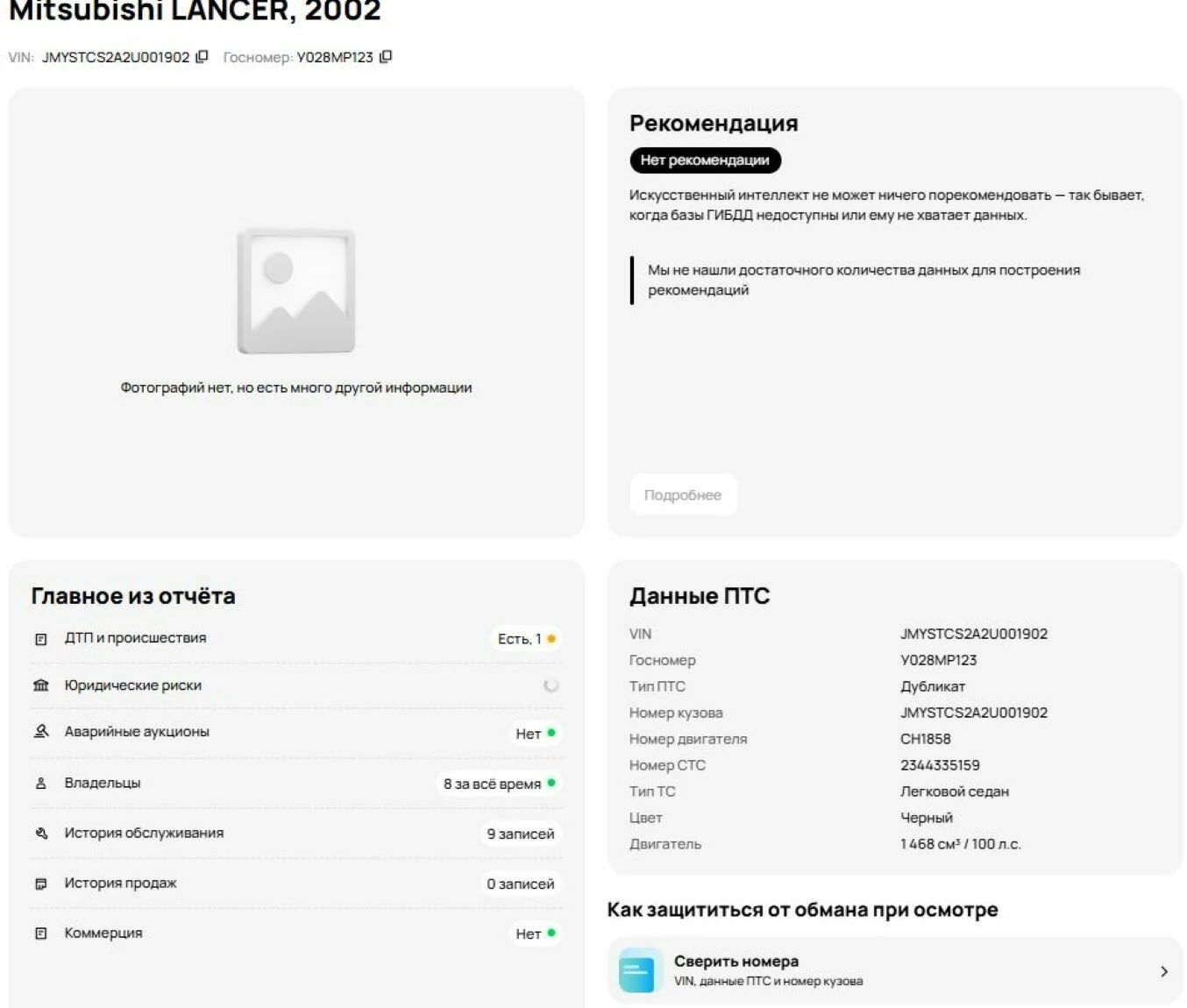 ✅ В базе ГИБДД есть зафиксированные ДТП.
