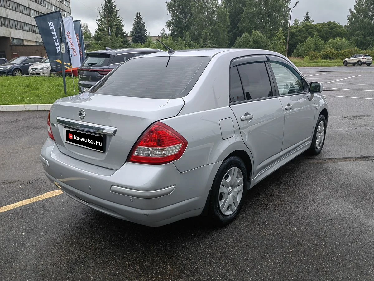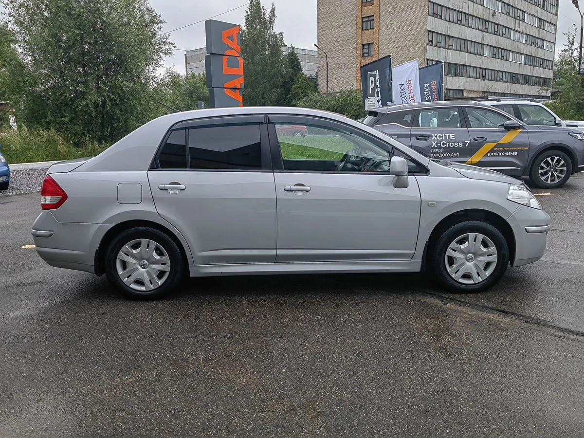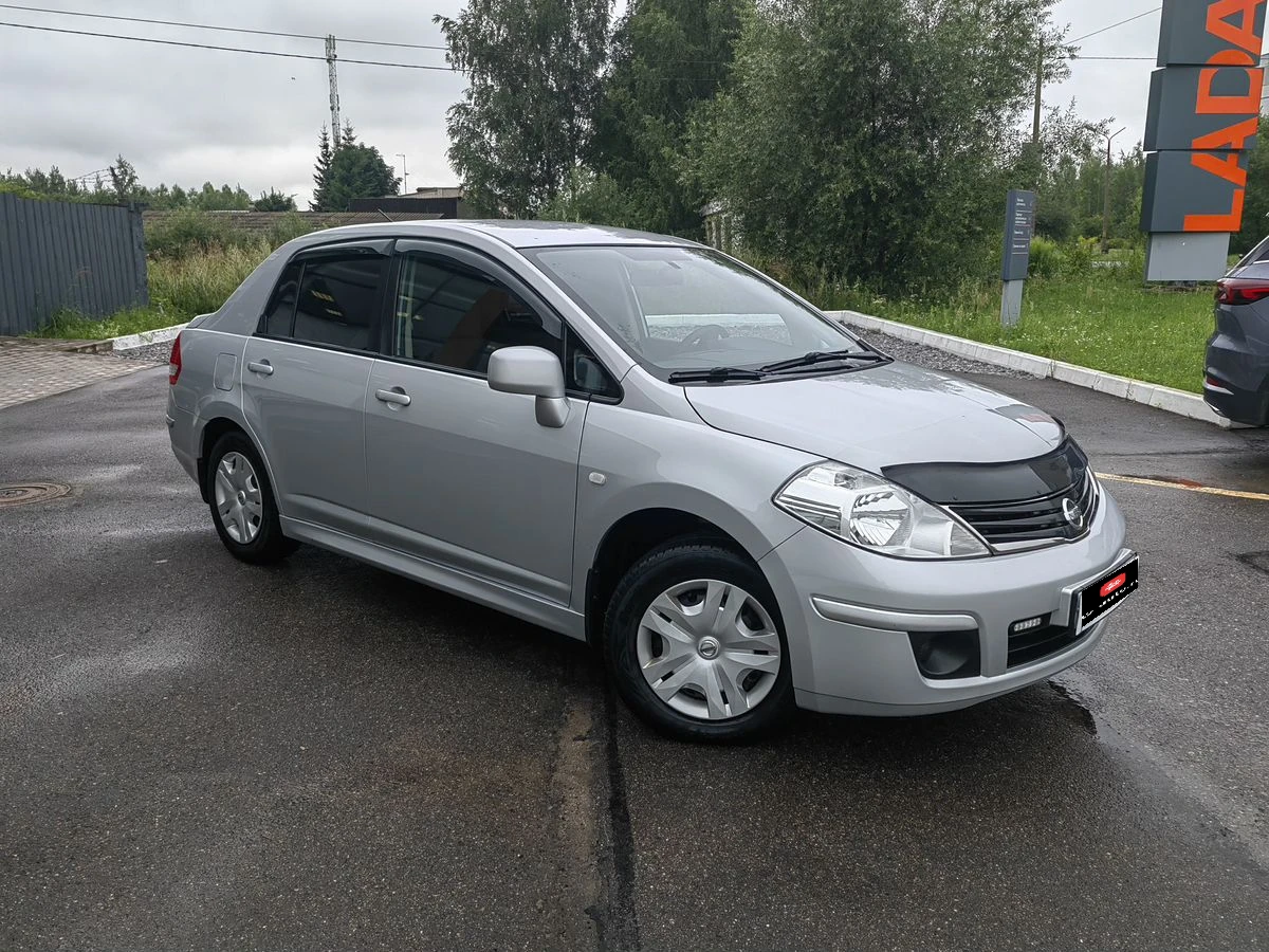 Nissan Tiida I Рестайлинг 2013 года — практичный седан, который подойдёт как для городских поездок, так и для путешествий за город. Серебристый кузов и лаконичный дизайн делают автомобиль узнаваемым, а его технические характеристики — надёжными спутниками в дороге.