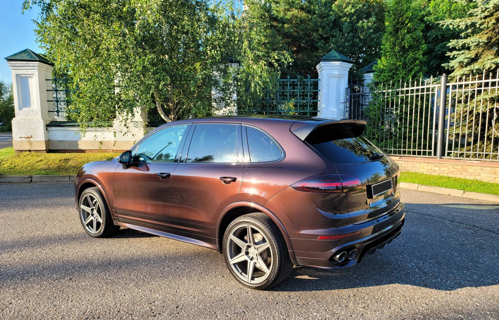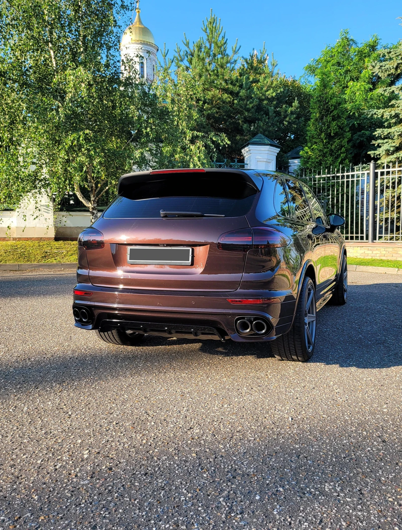 Дополнительно установлен полный стайлинг от Turbo S версии (второй такой дизельный Кайенн не найти), редкий цвет металлик Mahogany-тёмный шоколад, смотрится бесподобно. Вся передняя часть авто покрыта качественной полиуретановой броне-пленкой LLumar, включая фары, противотуманки и полностью задние фонари. Машиной занимался и владел с любовью, бережная умеренная эксплуатация, что отражается относительно малым пробегом (Сейчас на отметке 70000 км). Подвеска - классические пружинные амортизаторы Porsche (В угоду надежности и простоты обслуживания, специально подбирал на них, а не на пневме).