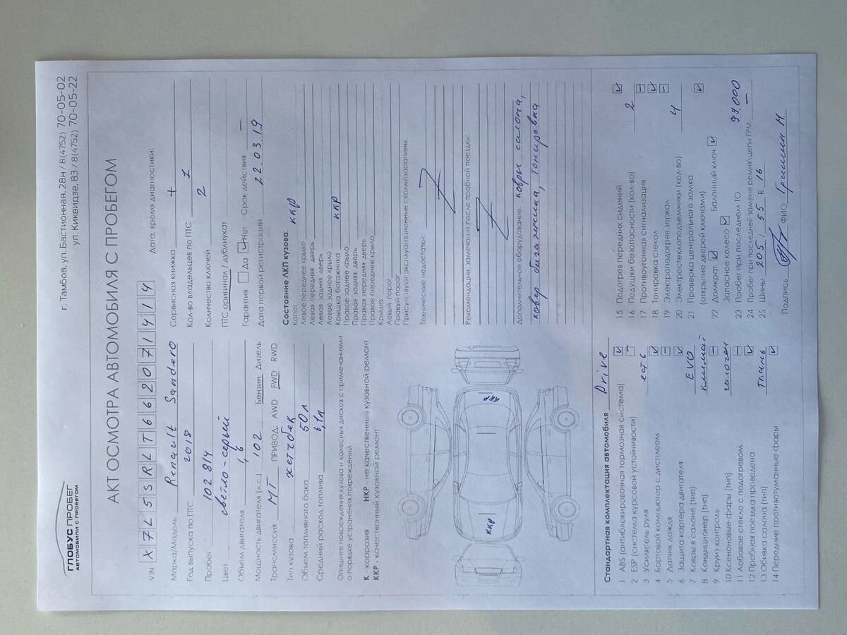 Состояние авто: