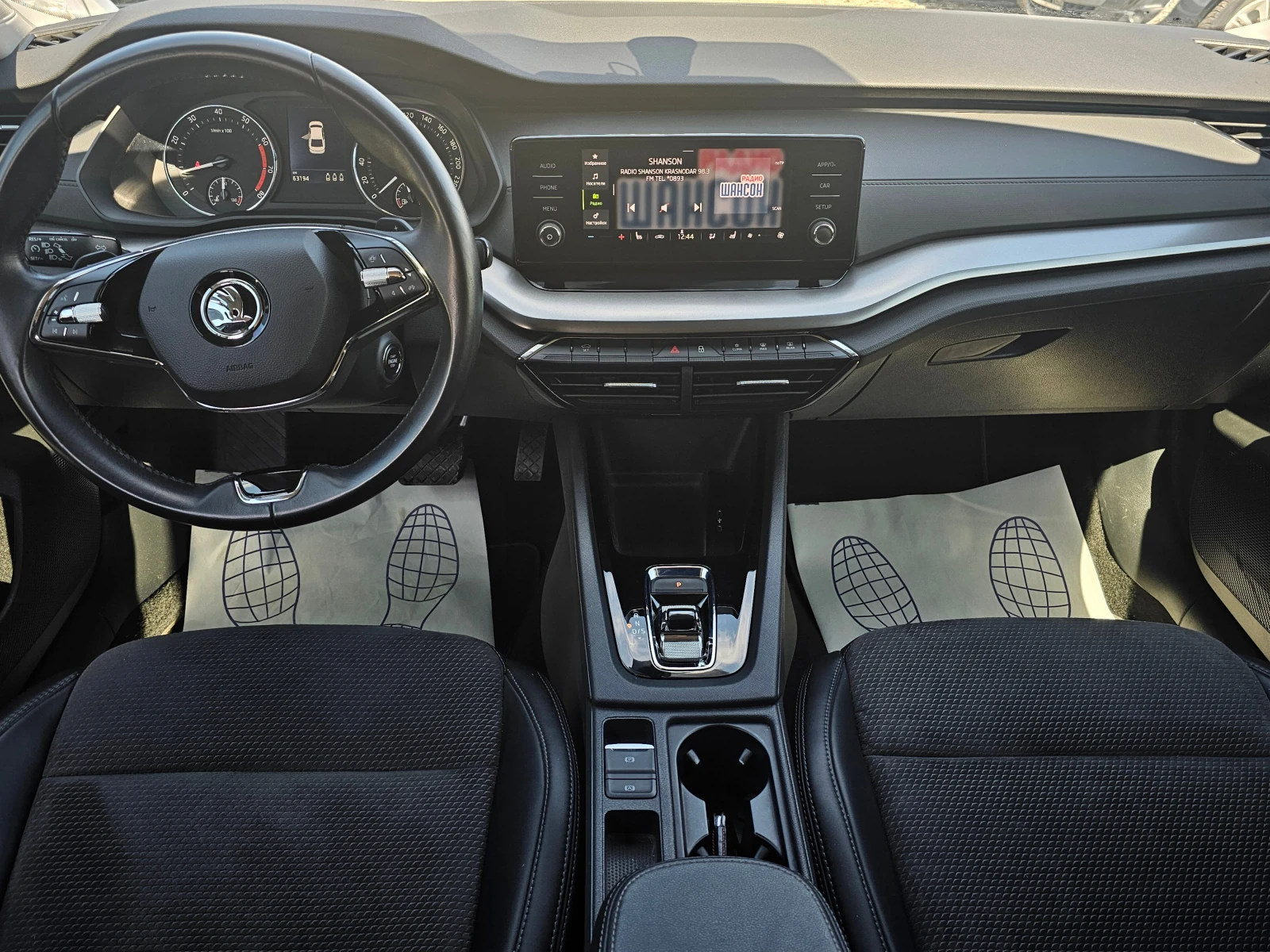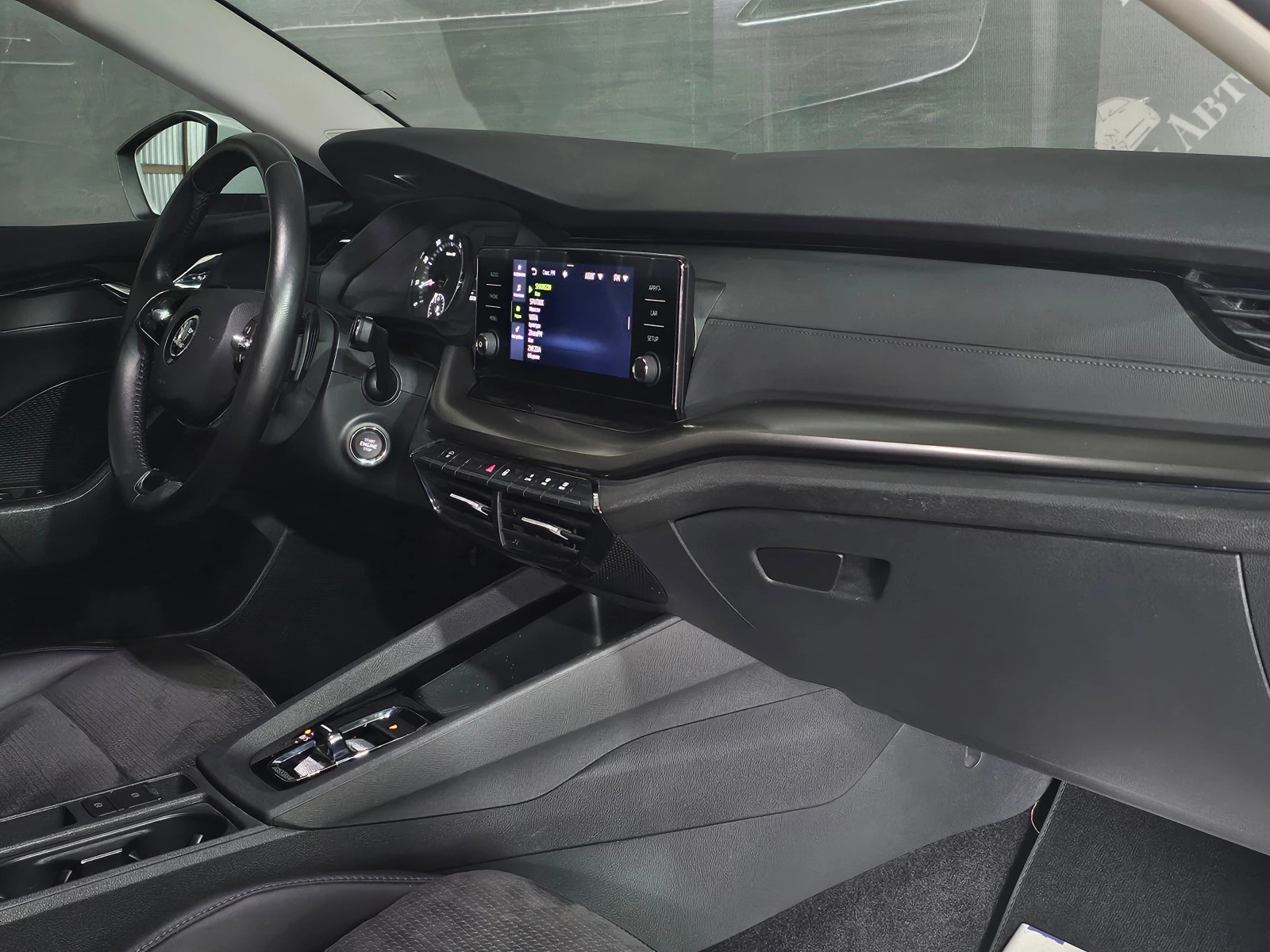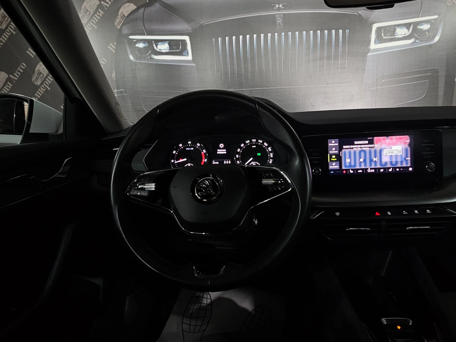 Отделка салона выполнена в тёмных тонах с комбинированной обивкой, что придаёт интерьеру лаконичный вид. Декоративная подсветка салона и обогрев рулевого колеса создают атмосферу уюта и комфорта. Подрулевые лепестки переключения передач и отделка кожей рычага КПП добавляют эстетическую привлекательность и удобство в использовании.