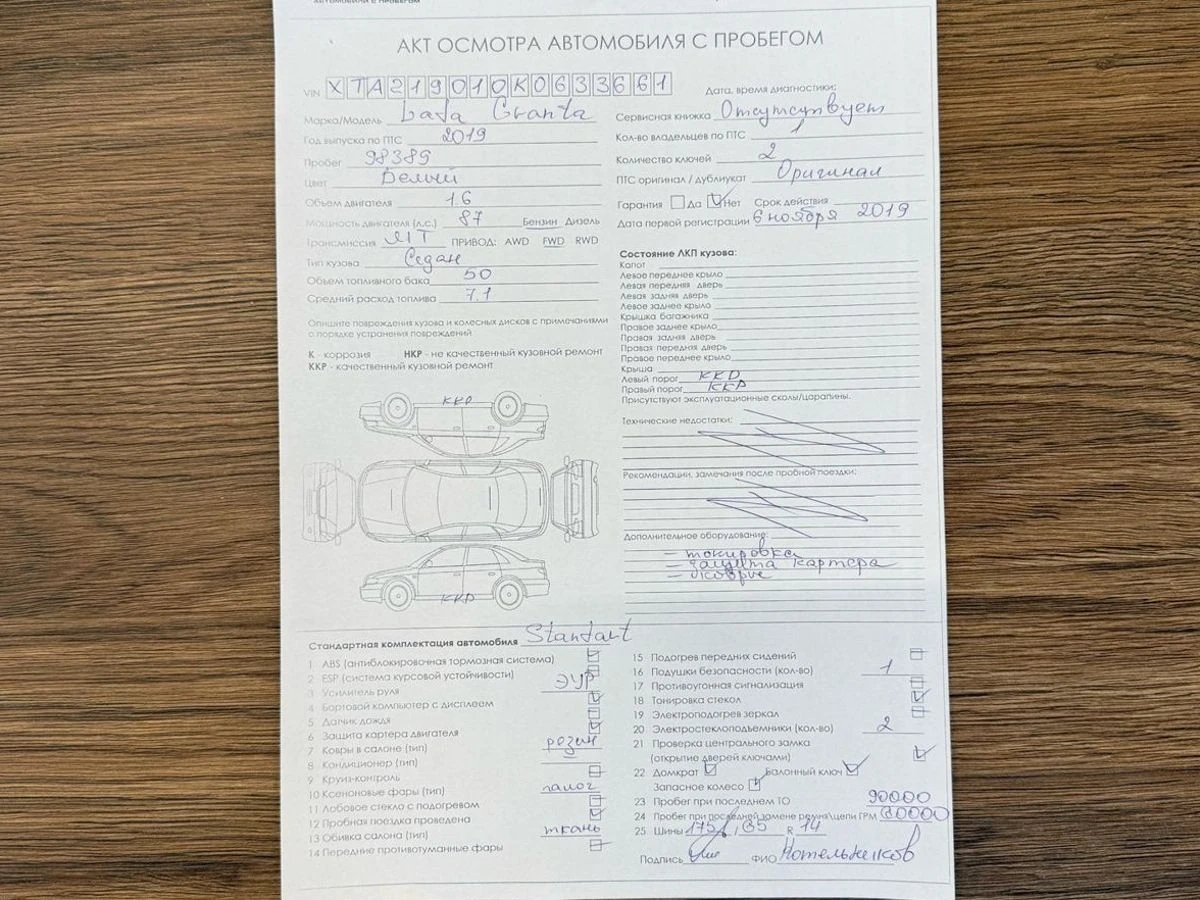 Состояние авто:
