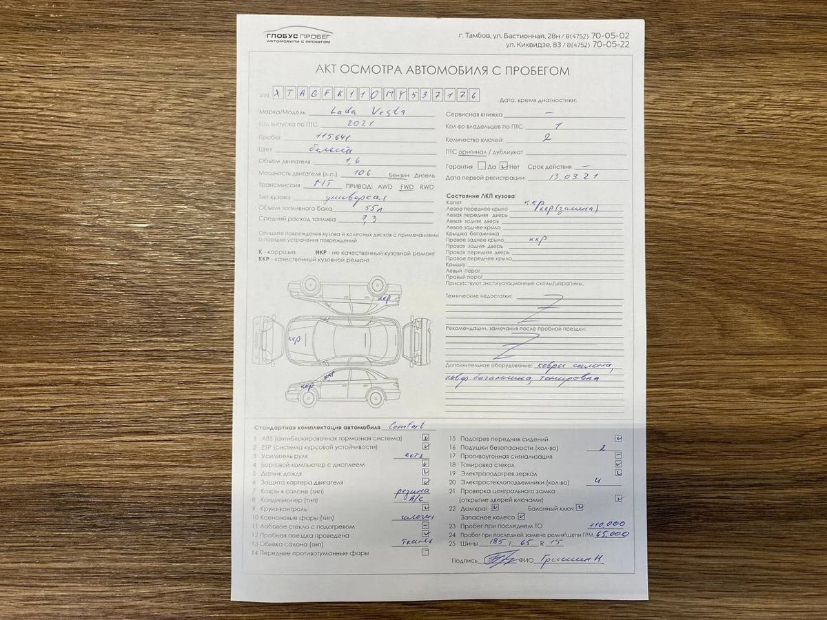 Данные по VIN