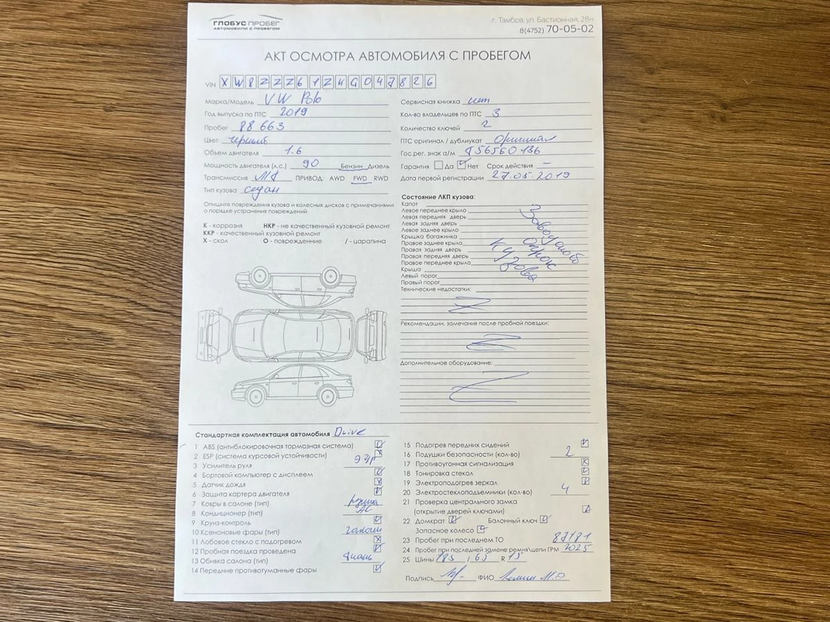 Состояние авто:
