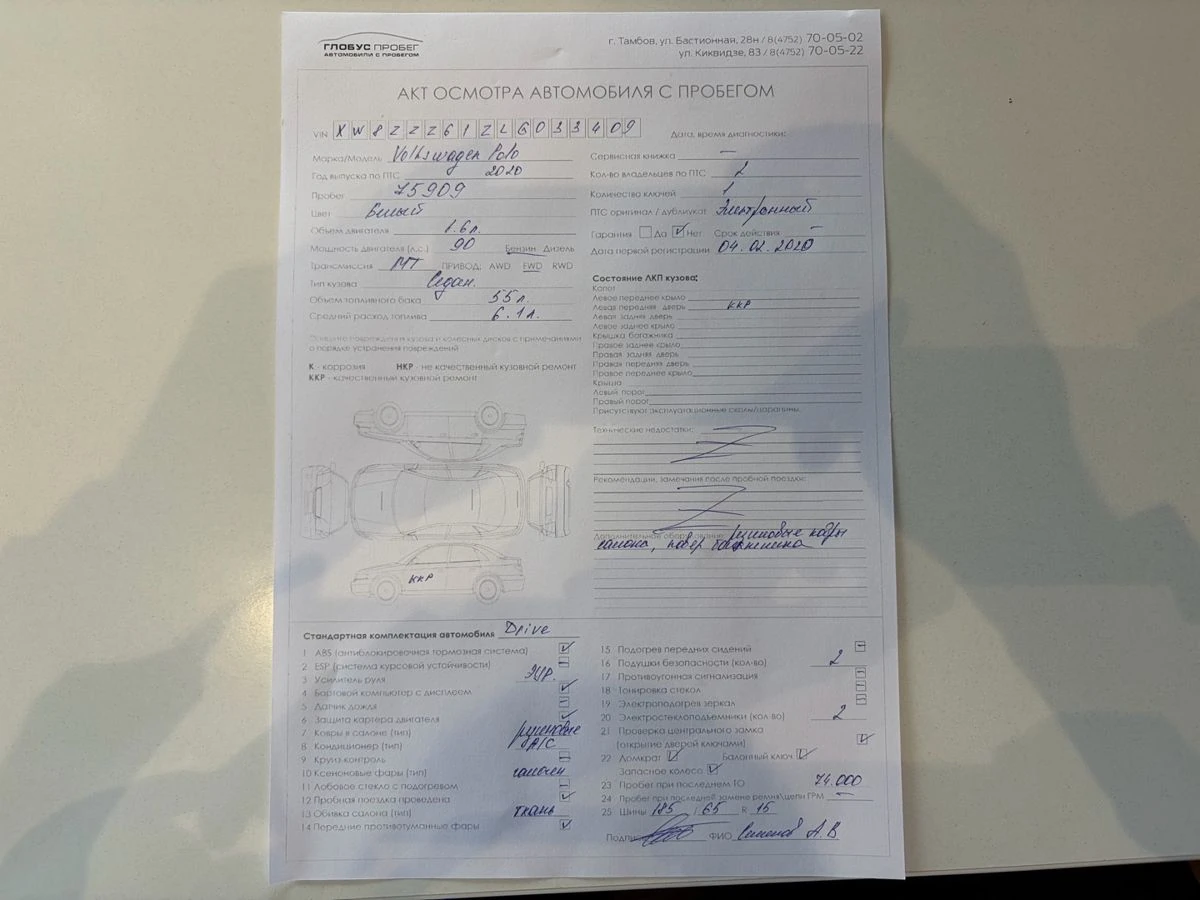 Состояние авто: