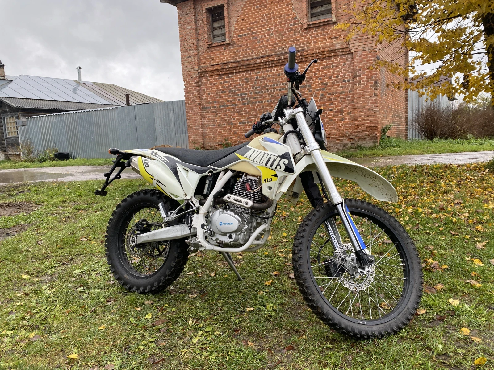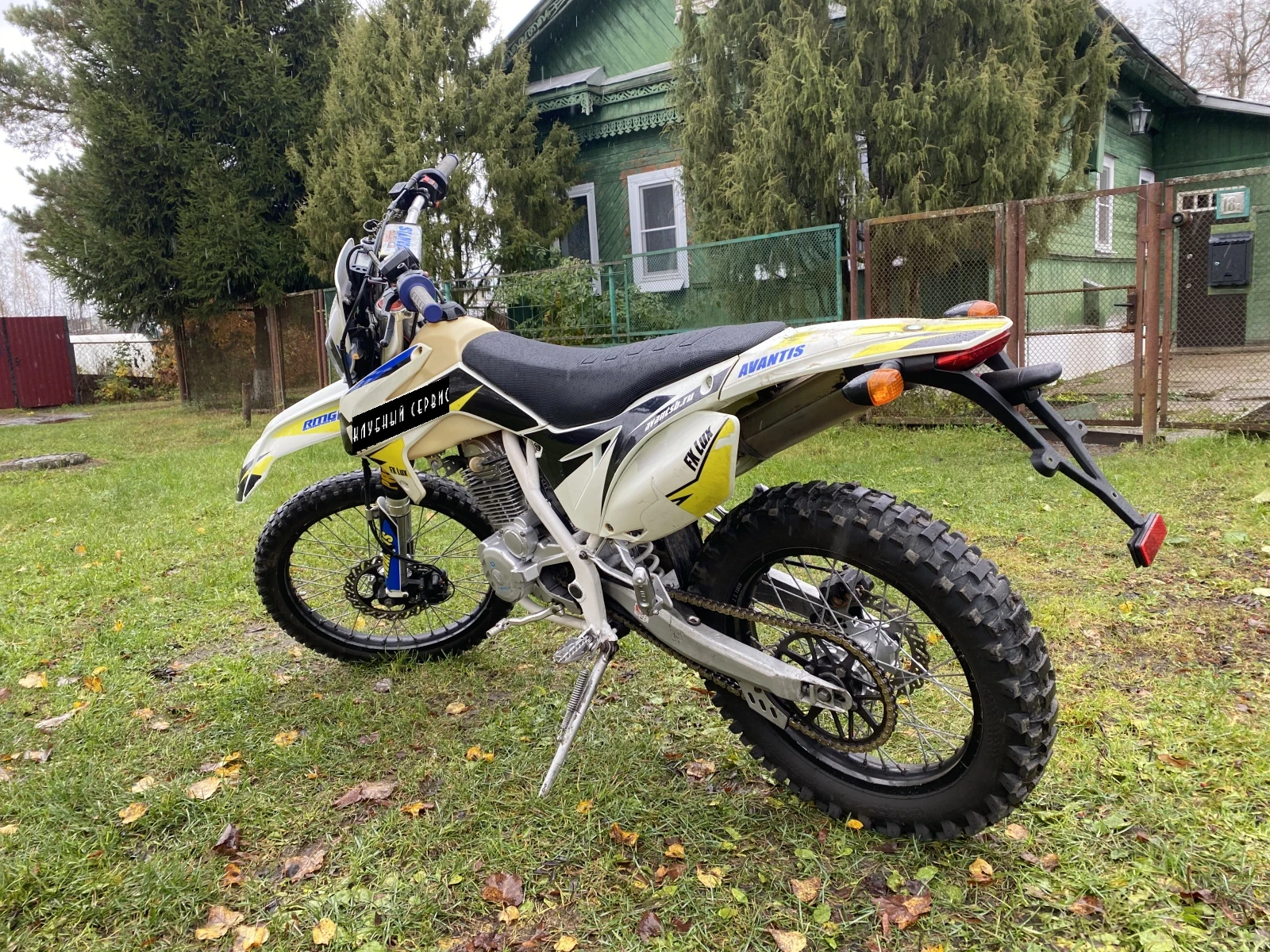 Состояние хорошее,прогрессия перебрана,цепь и звезды в норме,колодки в норме,диодная фара,двигатель не дымит,едет бодро.Подвеска с регулировками сжатия и отбоя.
