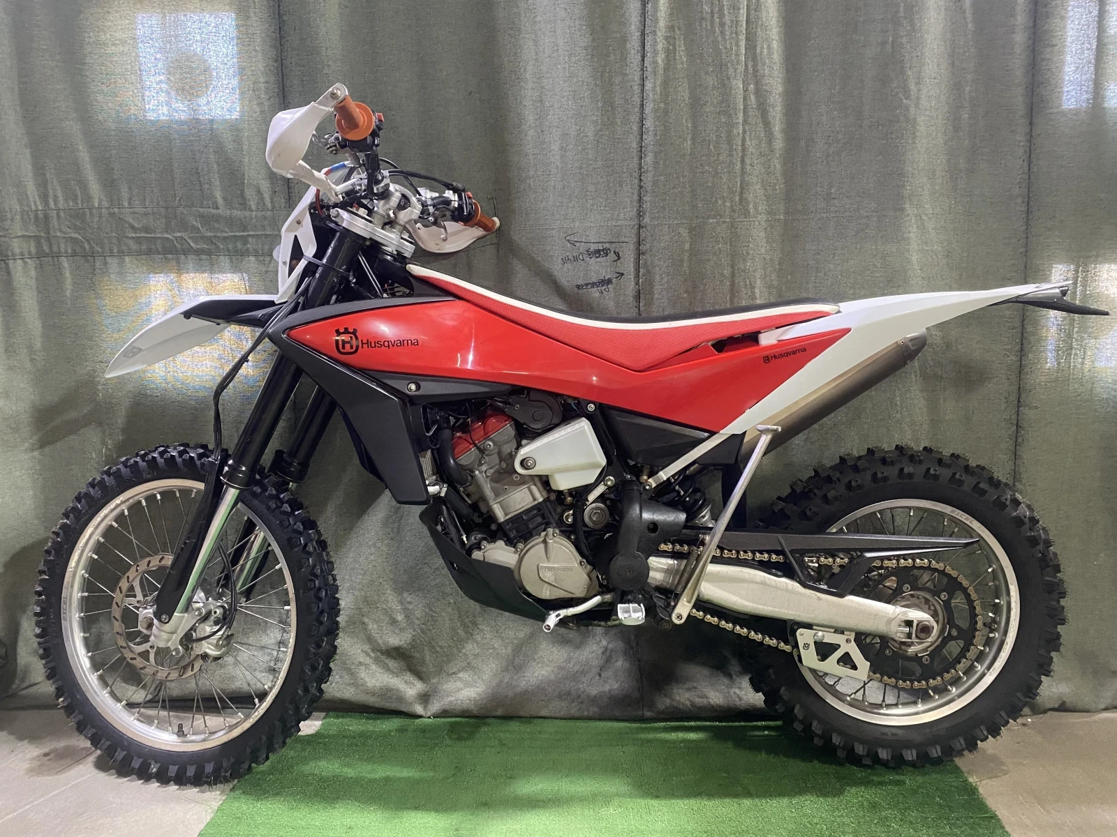 Продам эндуро мотоцикл Husqarna TE450. Амортизаторы обслужены, стоят абсолютно новые шины, новые колодки, новая японская цепь, новые звезды. Все светится: есть ближний, дальний, гудок, габарит и стоп сигнал. Для лучшей развесовки на заводе придумали перенести бак назад. В подарок отдам шины на которых мотоцикл вышел с завода.