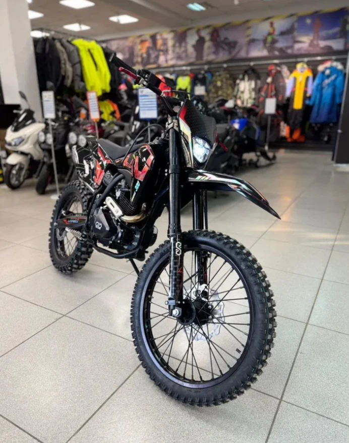 В переднем и заднем колесах установлены антибуксаторы, которые притягивают покрышку к ободу, позволяя ездить по бездорожью при низком давлении в камерах, не давая покрышке проворачиваться во время езды. Размер передней покрышки: 80/100-21. Размер задней покрышки: 120/100-18. Они прекрасно себя ведут по песку и грязи, что позволяет райдеру отлично показать себя на пересеченной местности.