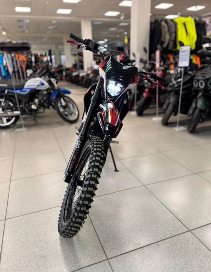 Важная часть современного эндуро мотоцикла - усиленный руль переменного сечения. На руле установлен рычаг заслонки подсоса. Алюминиевая ручка газа с коротким ходом имеет регулировку троса. Также мотоцикл укомплектован электронной панелью приборов.
