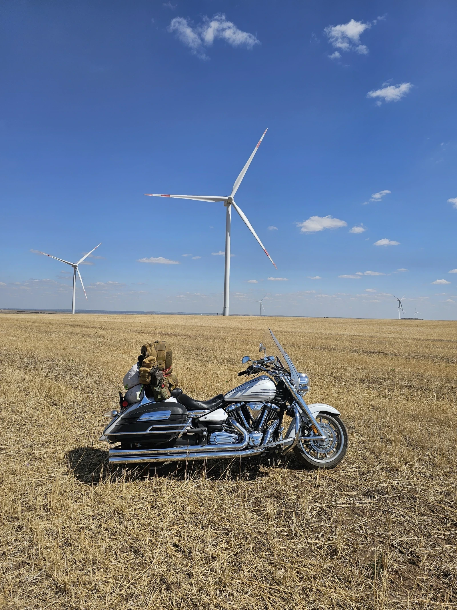 xv1900 stratoliner, s версия (хромированная). Привезен из США в 2017 году с пробегом 50к км, куплен в 2022 году на пробеге где то 55-57 к км. На текущий момент пробег чуть более 92к км. В 2024 году перед сезоном заменено сцепление + установлена усиленная прижимая пластина ams motorsport (аналог барнета). Замена масла 2 раза в сезон, раз 6-7 тысяч, также произведена замена масла в вилке. Дополнительно установлены подогрев грипс Oxford (родные грипсы прилагаются) и диодные птф, подключеные к штатному пульту. Диодный свет также в ближнем и дальнем свете. Установлены прямотоки cobra + power commander 5. В прямотоки установлены флейты. В комплекте прилагается качественный дорогой чехол конкретно на стратолайнер с высоким стеклом. Технических проблем не имеет, с третьей передачей проблем нет, не гудит, не хрустит, видимо уже заменена на новую ревизию, ибо на таком пробеге проблема бы уже давно вылезла, ремень без трещин, надрывов, натяжка равномерная. Двигатель от замены до замены масло не расходует. Ездит довольно много и далеко, соответственно в надёжности сомнений нет никаких. Перед сезоном требуется произвести стандартное ТО (масла, фильтра) и заменить подшипник рулевой колонки. Подшипник куплен, отдам вместе с мотоциклом.
