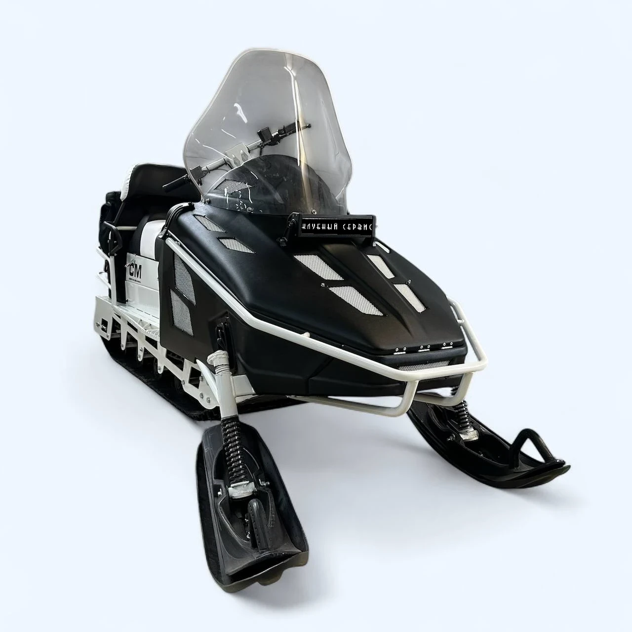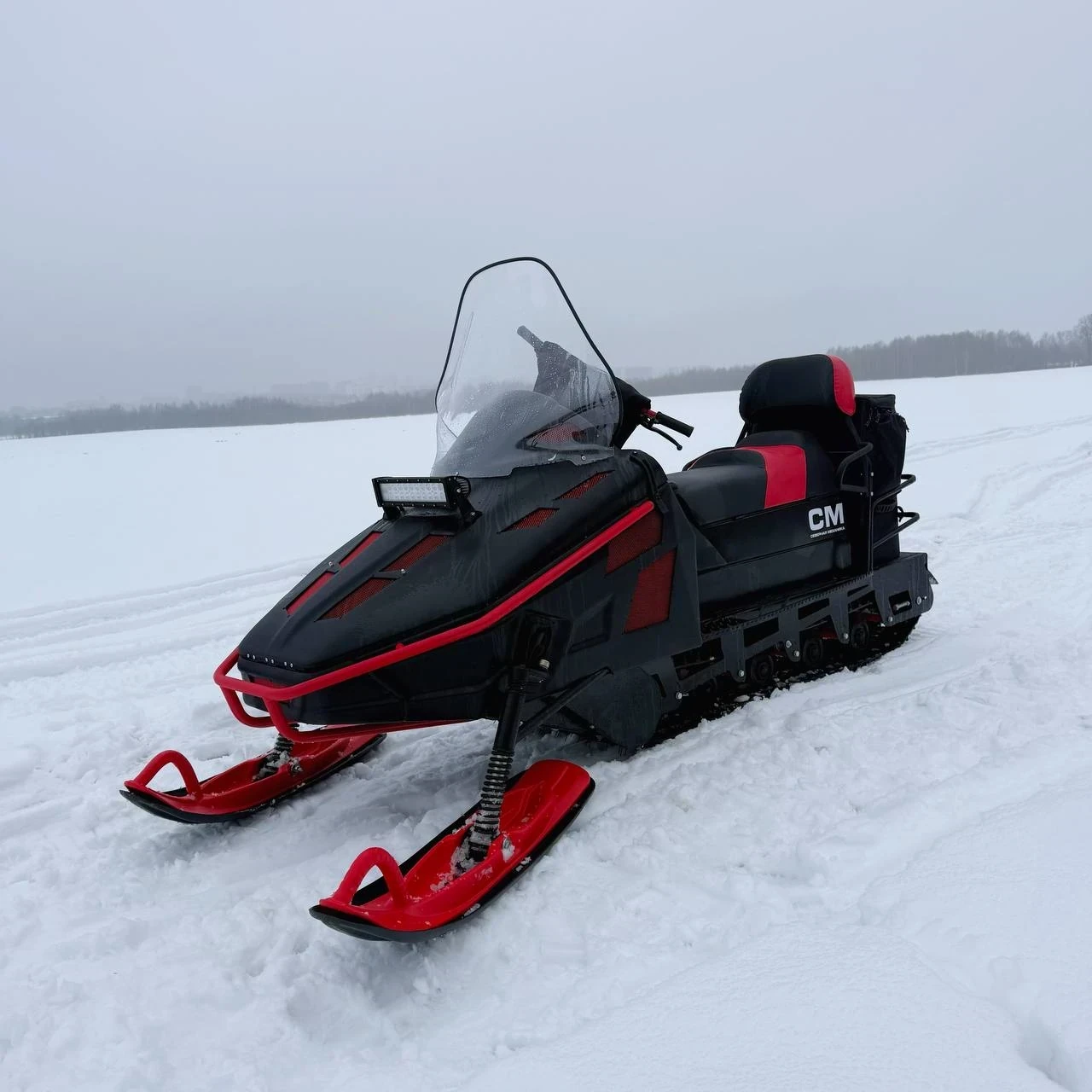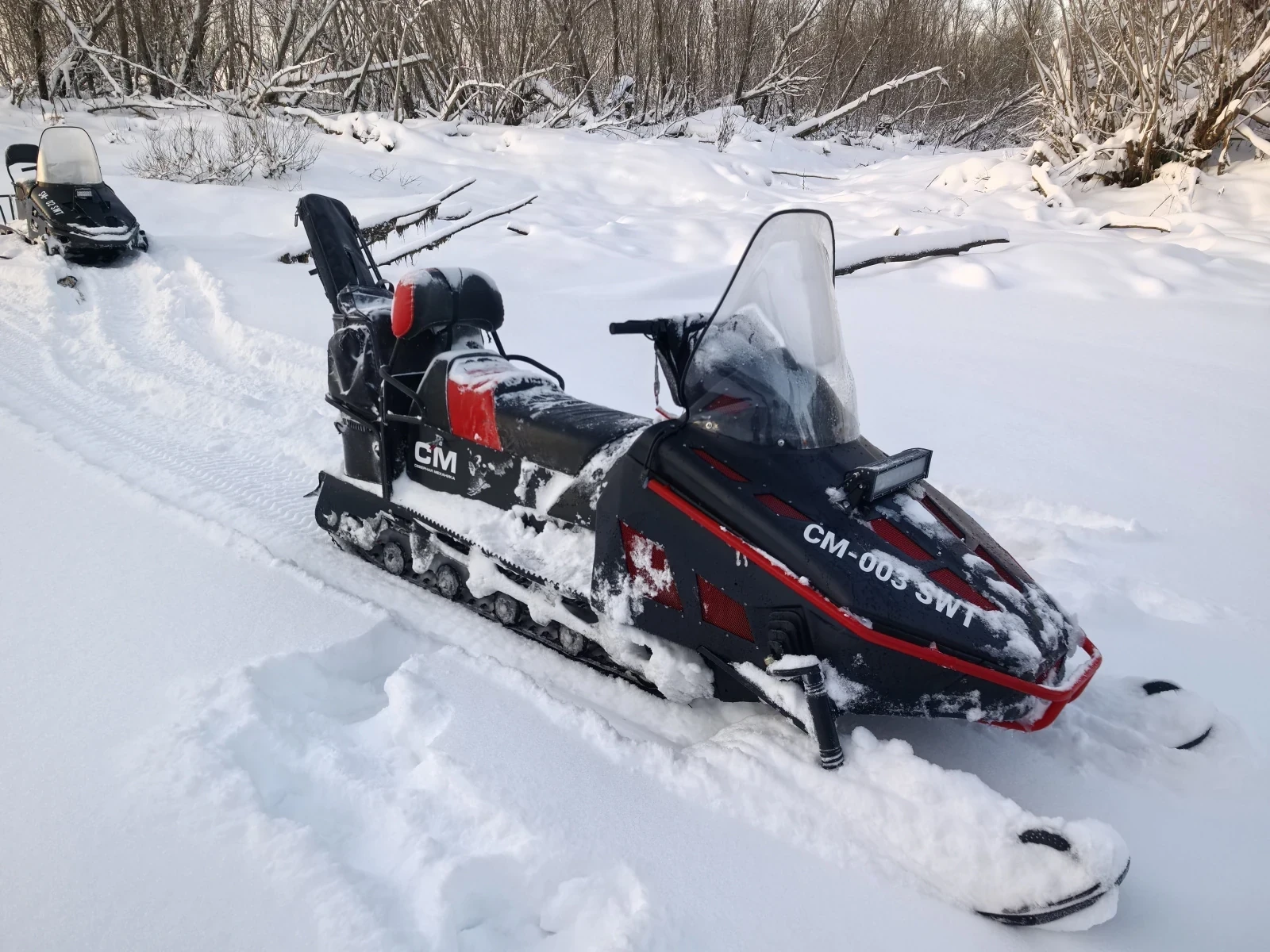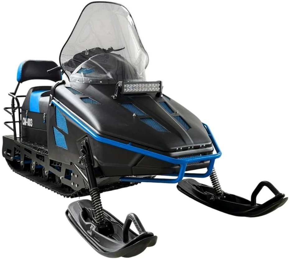 Снегоход СМ-003 . Это утилитарный снегоход с гусеницей 600мм. И грунтозацепом 30мм. Модель специально разработана для профессионального использования на промысле, охотхозяйствах, рыболовных участках. Простая в обслуживании и надёжная конструкция позволяет обслуживать его людям с минимальными техническими навыками.