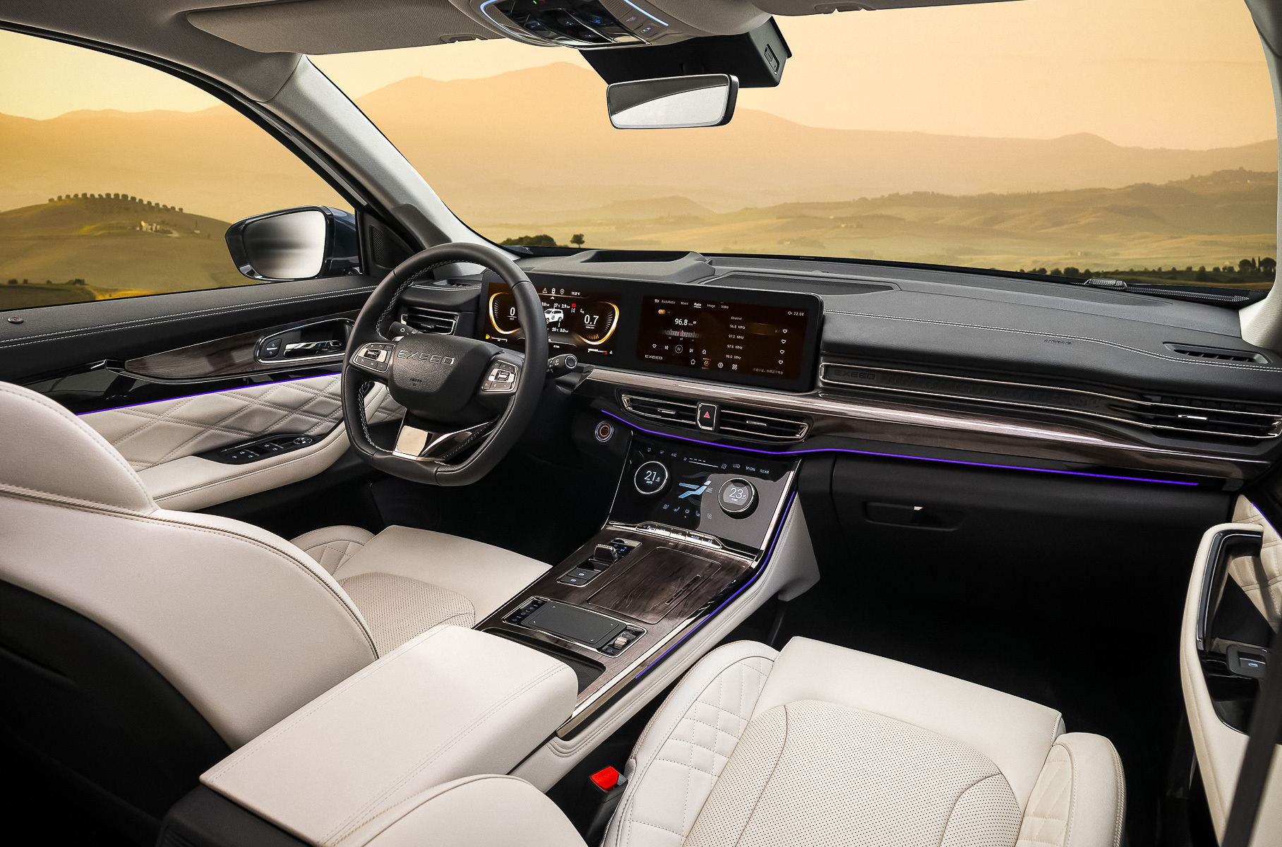 Внутри авто использована черно-коричневая отделка, есть трикотажный потолок, улучшено пространство под подлокотником, а панель управления смещена вперёд для удобства. Технически, внедорожник оснащён 2,0-литровым турбированным двигателем мощностью 261 л.с. и крутящим моментом 400 Н∙м, что позволяет разгоняться до 200 км/ч. Двигатель работает с 8-ступенчатой автоматической коробкой Aisin. В более дорогих комплектациях есть полный привод, адаптивная подвеска и новая система шасси Feiyu для повышенной устойчивости и комфорта.