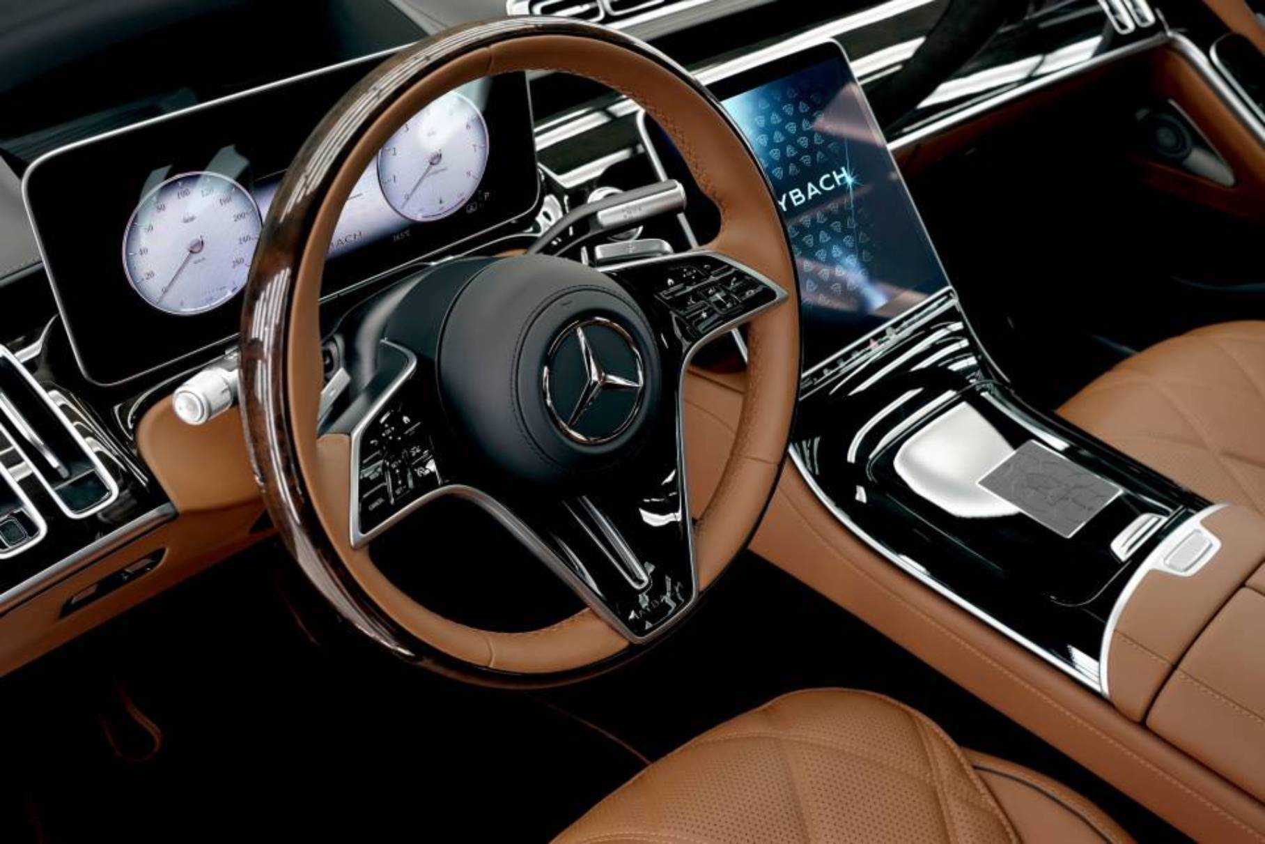 В списке оснащения — пять экранов мультимедийной системы MBUX, активное шумоподавление и обширный набор опций. Процесс нанесения многослойного золотого покрытия занимает до десяти рабочих дней, что вдвое больше времени, чем стандартная покраска двухцветных моделей.