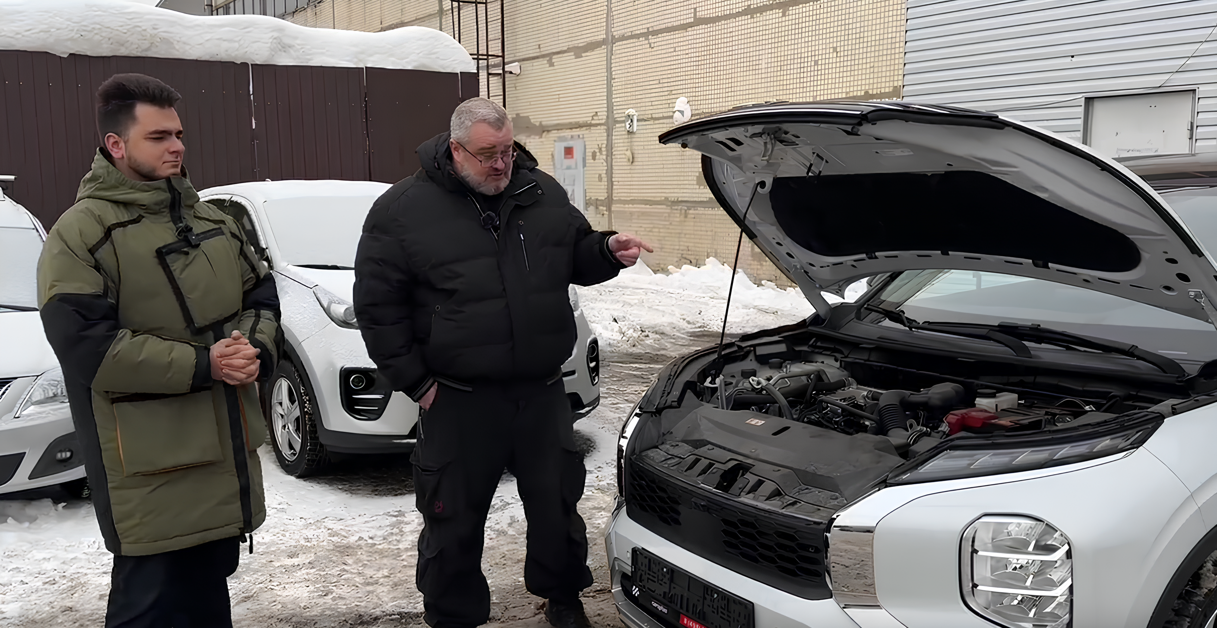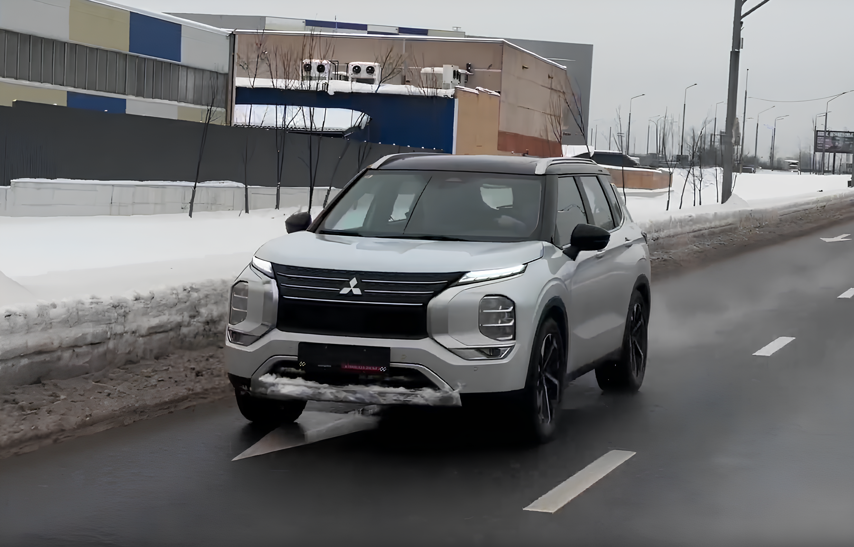 На заснеженной парковке машина показывает себя хорошо: