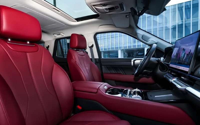 В салоне: 15,6-дюймовый центральный дисплей 2,5K (вместо прежнего 16,2-дюймового). Для пассажиров второго ряда предусмотрен отдельный 15,6-дюймовый экран, холодильник на 5,4 литра (от −6 до +50 градусов), шторки на окнах и аудиосистема с 14 динамиками.