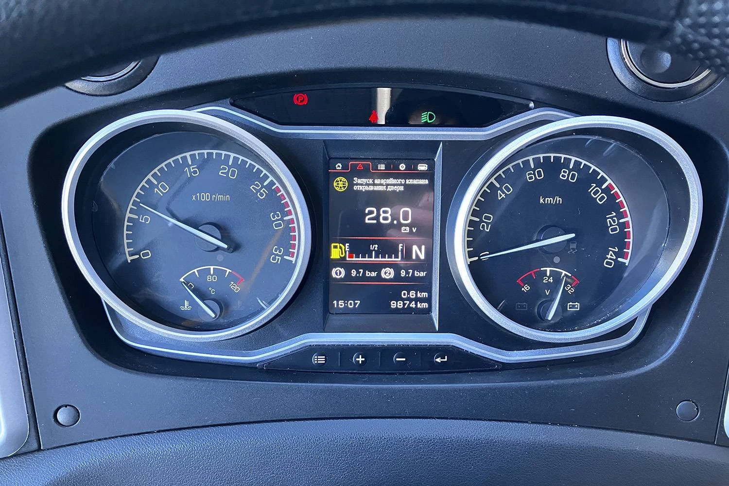 · Опционально: запасное колесо, откидные сиденья (2шт.), закрывающаяся водительская кабина, LED-электроуказатели о маршруте (3шт.), видеонаблюдение в салоне (6 камер с жёстким диском 500 гб), парктроник, электронные часы в салоне (показывают время и температуру), кондиционер Kelin(32000Kcal/h), 7" интегральное центральное управление, два 22" жидко-кристаллических цветных дисплея в салоне, стеклопакеты, сиденье водителя с подогревом и массажем
